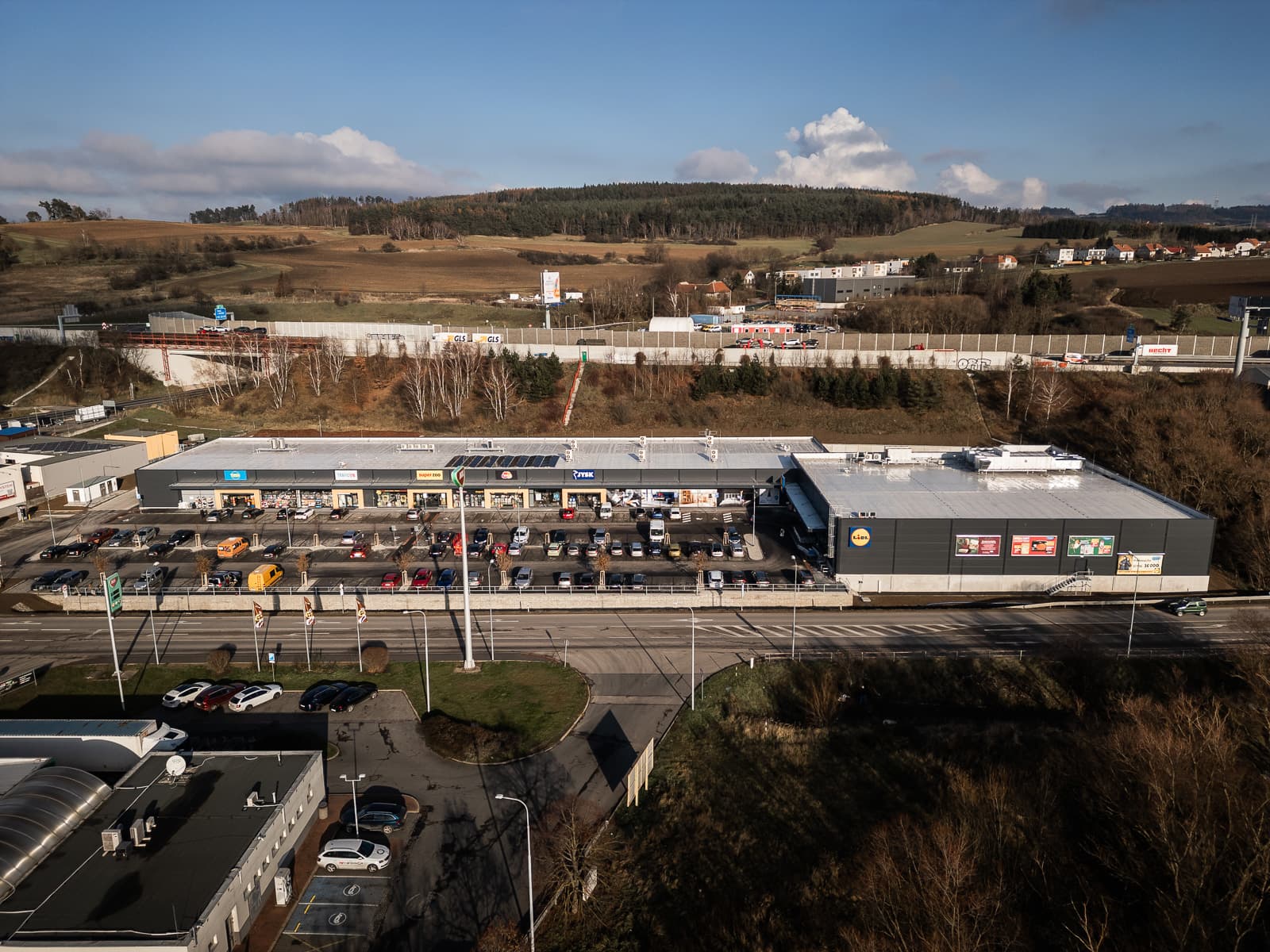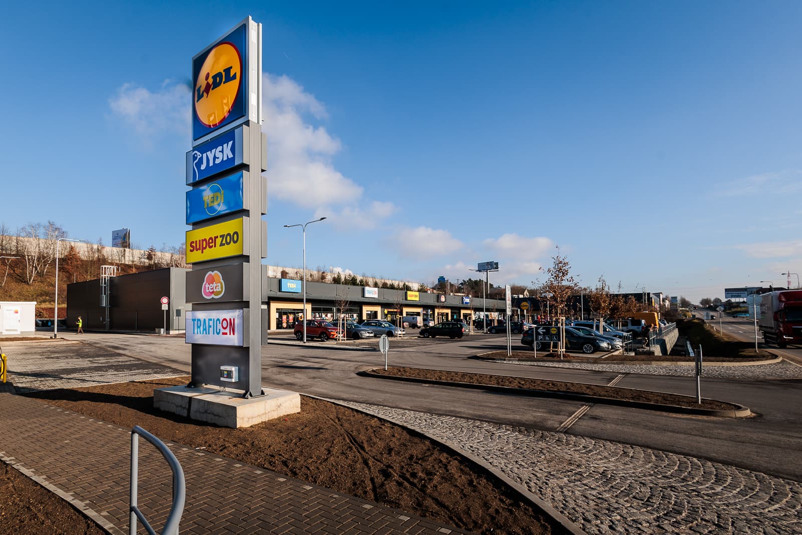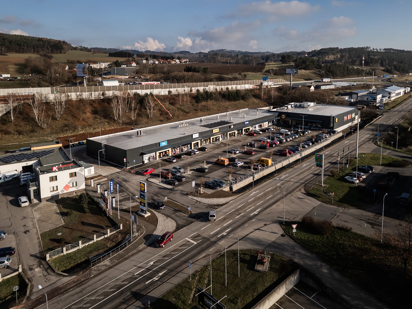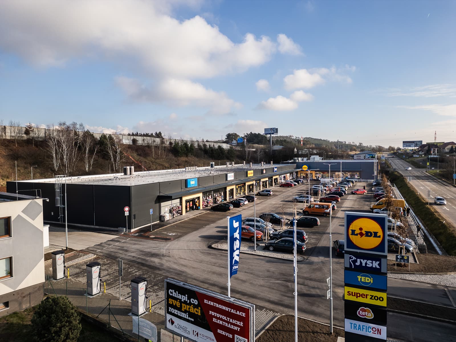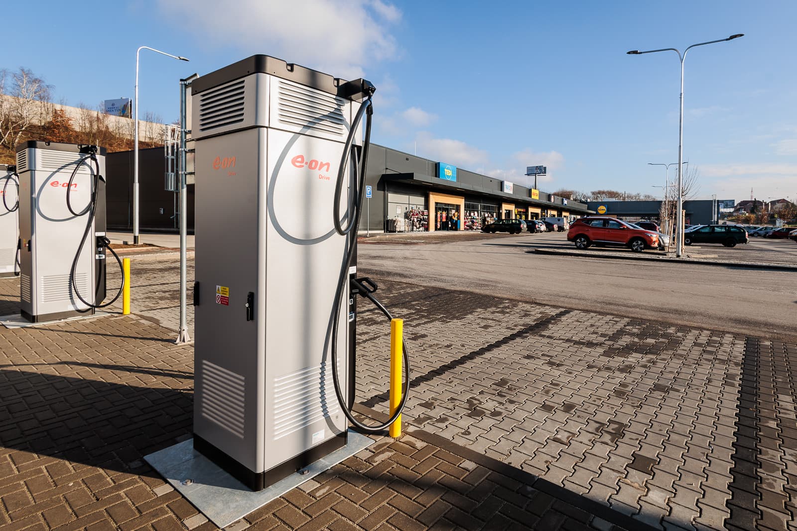 Střešní plocha bude osazena fotovoltaickými panely, přičemž první práce již začaly a budou pokračovat v roce 2025. Každá obchodní jednotka je vybavena samostatným tepelným čerpadlem pro efektivní řízení spotřeby energie. Na parkovišti jsou k dispozici čtyři dobíjecí stanice pro elektromobily, což podporuje udržitelnost a moderní požadavky na mobilitu zákazníků.